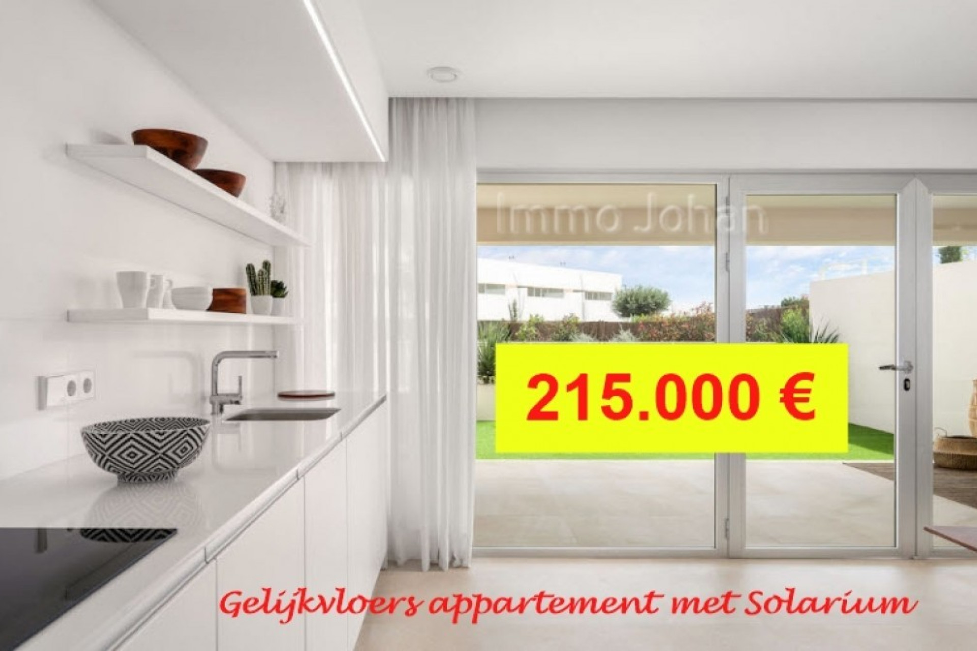 Mooie en Super ruim Nieuwbouw Gelijkvloersappartement in Los Altos :. Appartement 23 F . DIT IS EIGENLIJK GEEN APPARTEMENT AANGEZIEN JE GEEN BOVENBUUR HEBT...JE BOVENBUUR IS JE EIGEN SOLARIUM ! Tuin van 34 m2 en een groot Solarium van 77 m2 met fantastisch zicht op het zoutmeer van Torrevieja . Terrassen aan de voorkant en de achterkant , dus je hebt altijd een zon en of een schaduw terras beschikbaar . Ref JJSM023 INSTAPKLAAR !!! 215.000 € ! 2 Slaapkamers - 2 Badkamers ....
