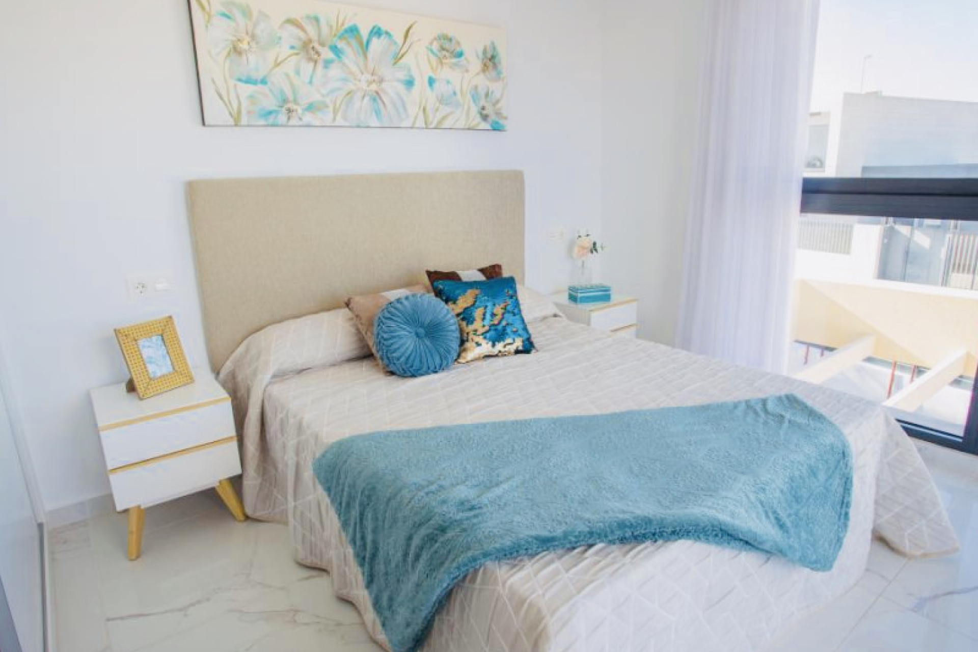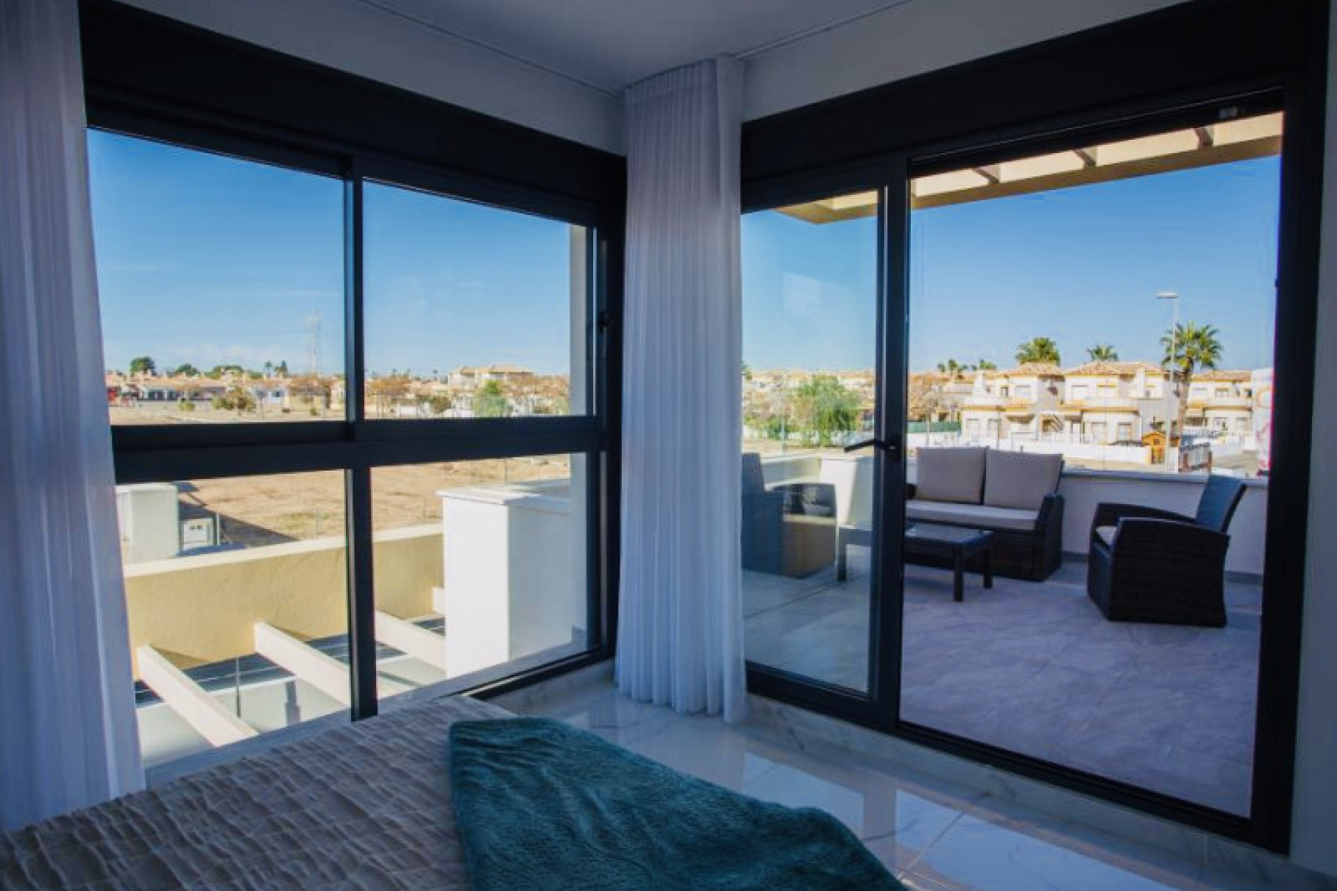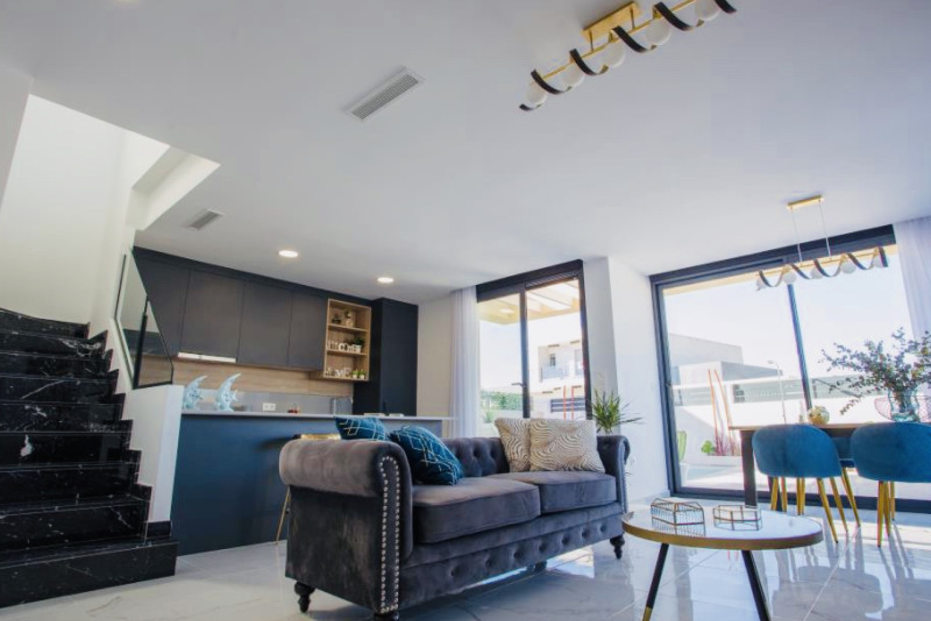 In de buitenwijken van Alicante, Los Montesinos, bevinden zich exclusieve luxe villa's van twee verdiepingen. Met ruime percelen en een prachtig uitzicht op de zoutmeren zijn deze woningen gelegen in een gebied dat het hele jaar door geniet van een aangenaam klimaat. De ligging biedt gemakkelijke toegang tot voorzieningen zoals supermarkten, bars en restaurants, en het charmante Spaanse dorp Los Montesinos ligt op slechts enkele kilometers afstand. Deze villa's zijn ontworpen met de nadruk op comfort en stijl. Alle woningen beschikken over drie slaapkamers en twee badkamers. De open keuken integreert naadloos met de woonkamer, wat een gezellige sfeer creëert om gasten te ontvangen of te genieten met familie. De elegante terrassen op de begane grond zijn ideaal om te ontspannen, terwijl de balkons op de bovenverdieping extra ruimte bieden om van het uitzicht te genieten. De prijsklasse voor deze woningen varieert van 325.900 € tot 395.900 €, met oppervlakten tussen 90 m² en 106 m². De woningen bevatten hoogwaardige voorzieningen, zoals volledig uitgeruste badkamers met douchewanden, geïnstalleerd meubilair, spiegels, verlichting, en vloerverwarming. De keuken is uitgerust met moderne apparatuur en de Guardian Sun-ramen bieden zonbescherming, terwijl aluminium elektrische rolluiken voor meer comfort en veiligheid zorgen. Verder heeft elke slaapkamer ingebouwde kasten, is er een pre-installatie voor airconditioning via leidingen, een beveiligde deur met video-intercom, en een elegante marmeren trap naar de bovenverdieping. Wonen op deze locatie stelt bewoners in staat om te genieten van een gastvrije gemeenschap met moderne infrastructuren en diensten die een rustige en ontspannende levensstijl aanvullen. Voor degenen die hun huis verder willen personaliseren, worden er extra opties aangeboden zoals een privézwembad en een solarium met panoramisch uitzicht. Deze nieuwbouw betekent een uitzonderlijke kans voor iedereen die wil investeren in een met zorg ontworpen luxe levensstijl.
